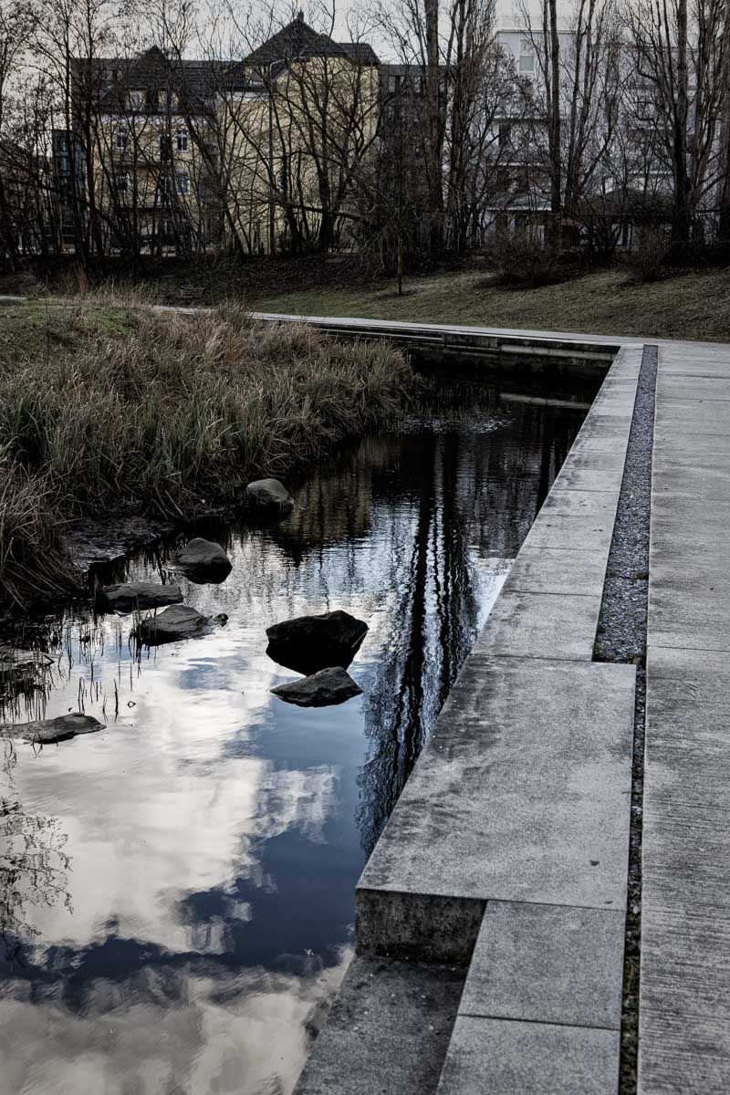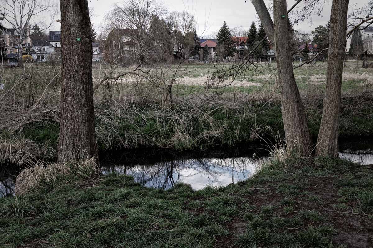 Zwanzig-Komma-Zwo - das ist die Strecke in Kilometern, auf der die Panke als drittlängster Fluss Berlins das Stadtgebiet von Berlin durchläuft. Startend an der Grenze zu Brandenburg bei Panketal und anschließend - kanalisiert oder als renaturierter Gewässerlauf - durch die Bezirke Pankow und Mitte bis zu ihren zwei Mündungen in den Nordhafen (Nordpanke) bzw. in die Spree (Südpanke). Die Fotografien begleiten die Panke über diese Strecke.