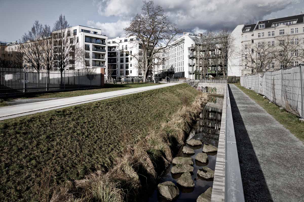 Zwanzig-Komma-Zwo - das ist die Strecke in Kilometern, auf der die Panke als drittlängster Fluss Berlins das Stadtgebiet von Berlin durchläuft. Startend an der Grenze zu Brandenburg bei Panketal und anschließend - kanalisiert oder als renaturierter Gewässerlauf - durch die Bezirke Pankow und Mitte bis zu ihren zwei Mündungen in den Nordhafen (Nordpanke) bzw. in die Spree (Südpanke). Die Fotografien begleiten die Panke über diese Strecke.